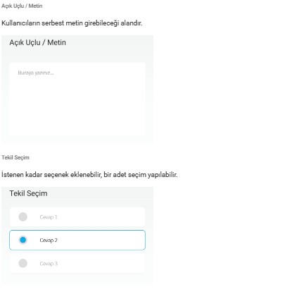 “Diğer” seçeneği oluştur: Yalnızca “Çoklu Seçim” ve “Tekil Seçim” tipindeki sorularda kullanılabilir.